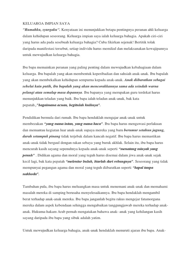Contoh Karangan Spm Melayu Tentang Keluarga